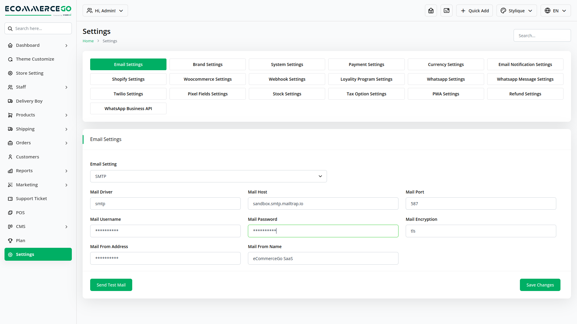 eCommerceGo shines in its usability for both the super admin and individual store owners. The backend administration panel is designed with a modern, clean, and intuitive interface, making navigation and management straightforward. Built with Laravel and Vue.js, the dashboard offers a responsive and dynamic experience, allowing for efficient control over subscriptions, themes, stores, and user accounts.