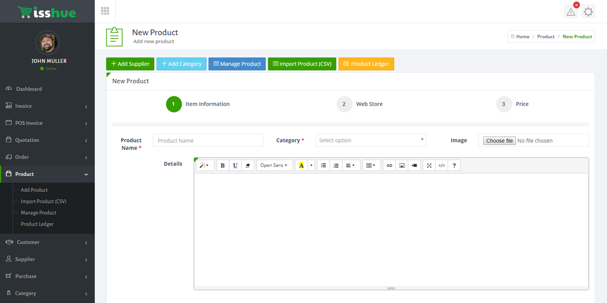 • Advanced Inventory Management: Keep track of your stock levels across all stores and warehouses. Isshue provides features for stock alerts, product variations, batch management, and easy product creation/editing, ensuring you never run out of popular items.